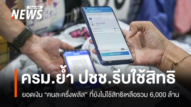 ประเด็นสำคัญจาก: ครม.ย้ำรีบใช้ “คนละครึ่งพลัส” ยอดเงินยังไม่ใช้สิทธิเหลือรวม 6,000 ล้าน