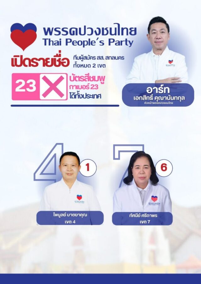 พรรคปวงชนไทย เปิดรายชื่อผู้สมัคร สส.ศรีสกลนคร เบอร์ 23