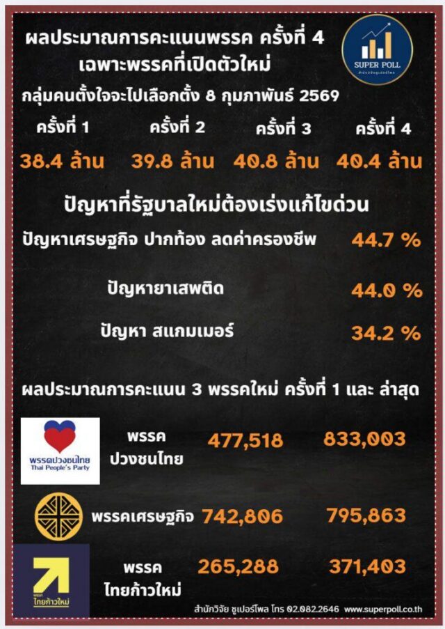 พรรคปวงชนไทย คะแนนพุ่ง โพลชี้ไล่ทันพรรคเศรษฐกิจ